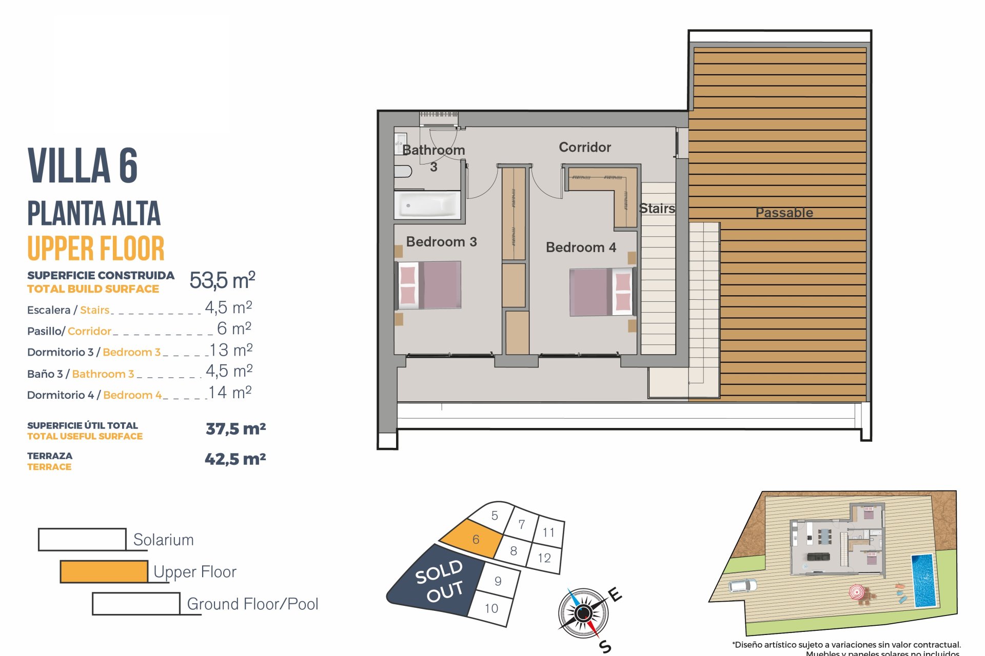 Cada vivienda cuenta con un jardín privado, ideal para disfrutar del clima mediterráneo. Además, las propiedades incluyen una piscina privada, perfecta para refrescarse durante los cálidos días de verano. Las terrazas amplias ofrecen un espacio adicional para el ocio al aire libre, mientras que el solárium proporciona un lugar exclusivo para relajarse y disfrutar de las vistas. El acceso al garaje privado asegura comodidad y seguridad para los residentes.