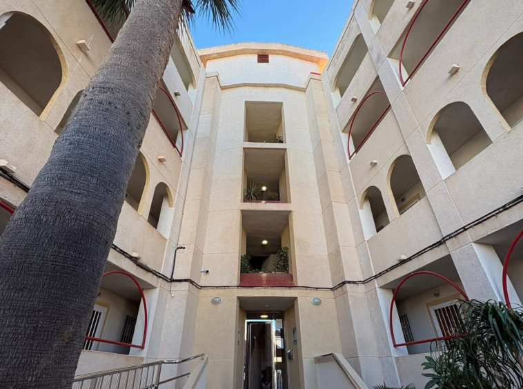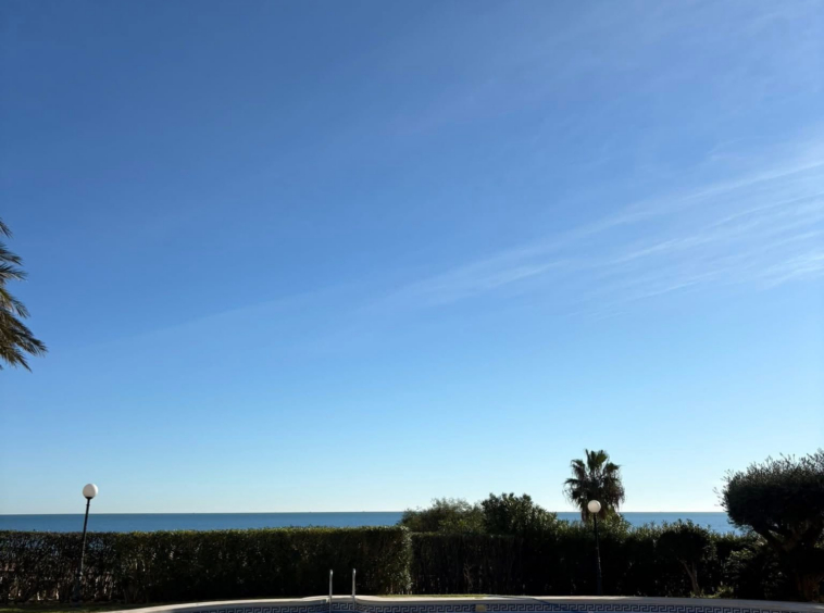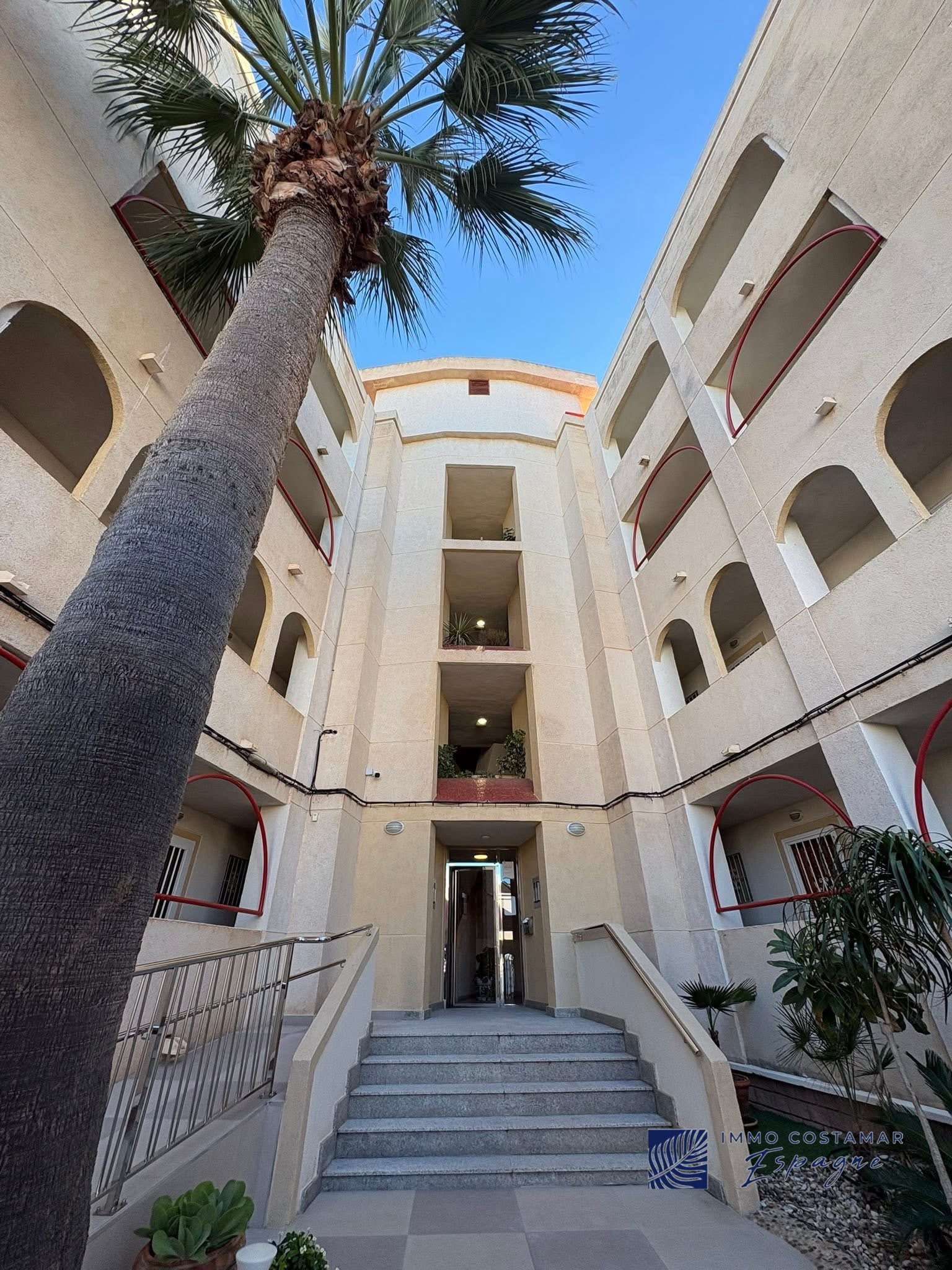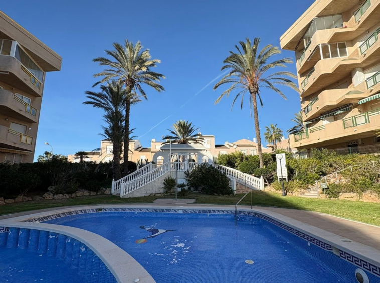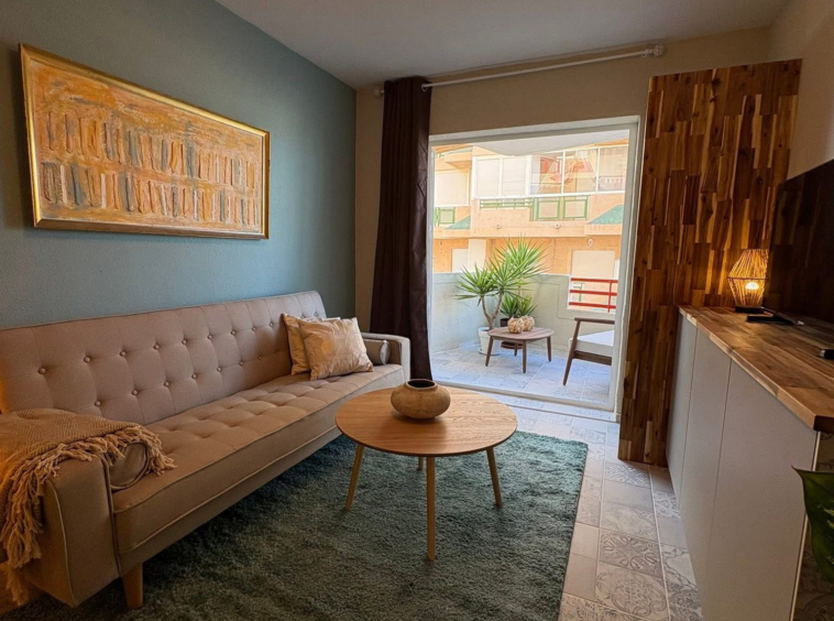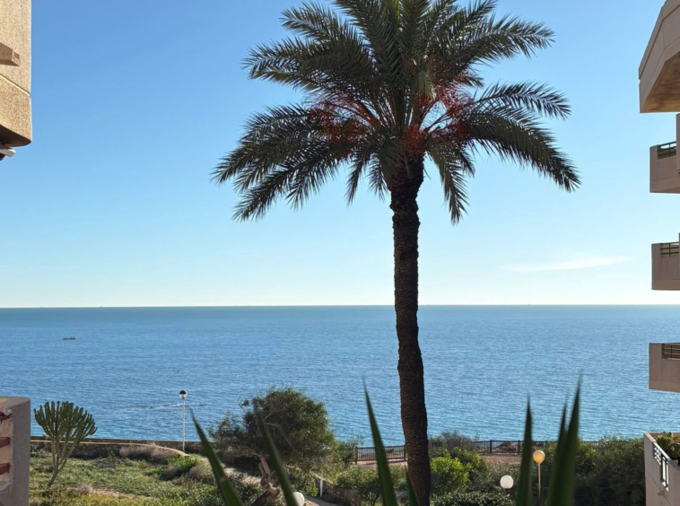 Studio rénové avec canapé-lit, balcon exposé sud avec vue mer, piscine commune en bord de mer à Mil Palmeras, Orihuela Costa