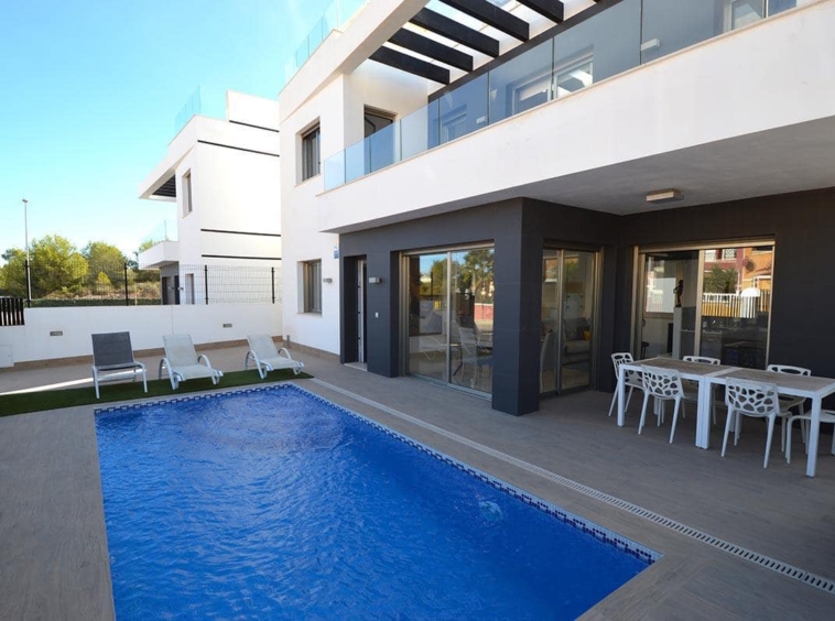 La villa a des qualités de luxe, piscine privée, grande cave, place de parking, solarium privé, climatisation par conducts, entièrement équipé et meublé.