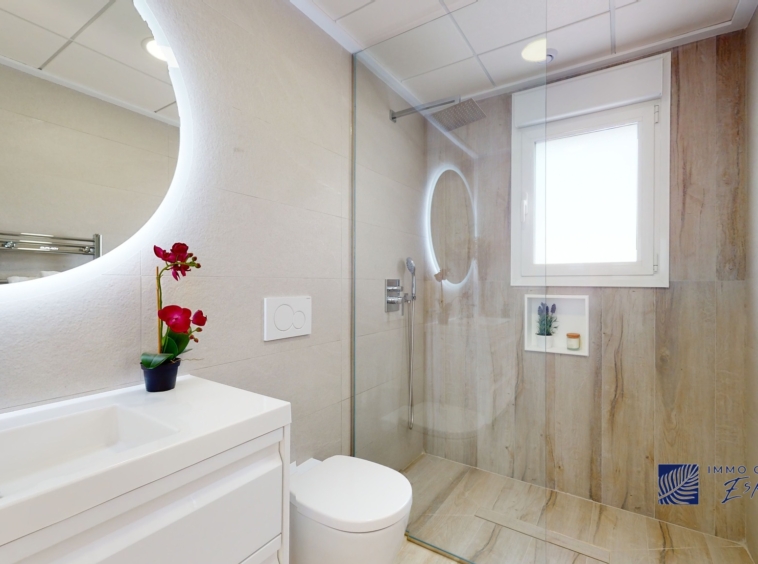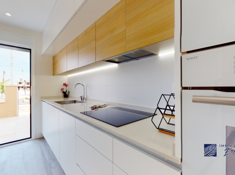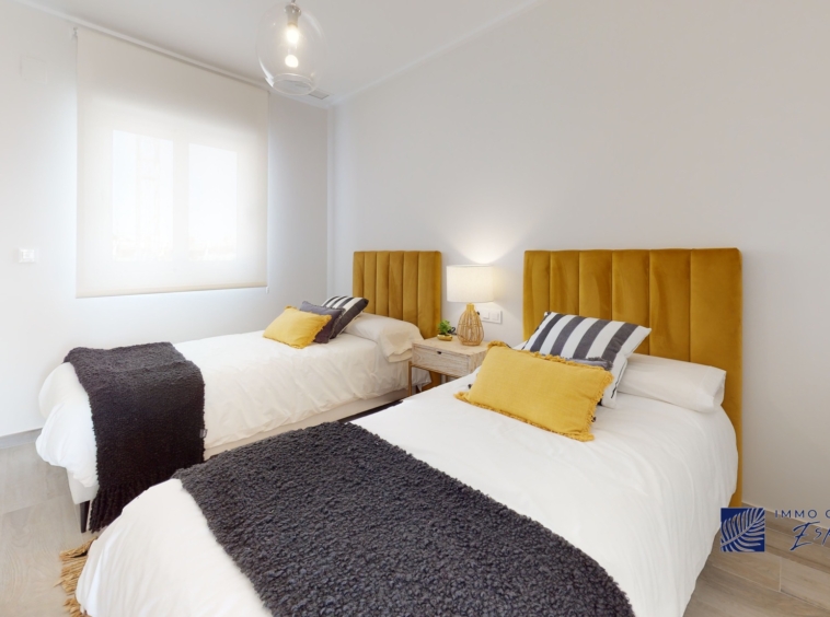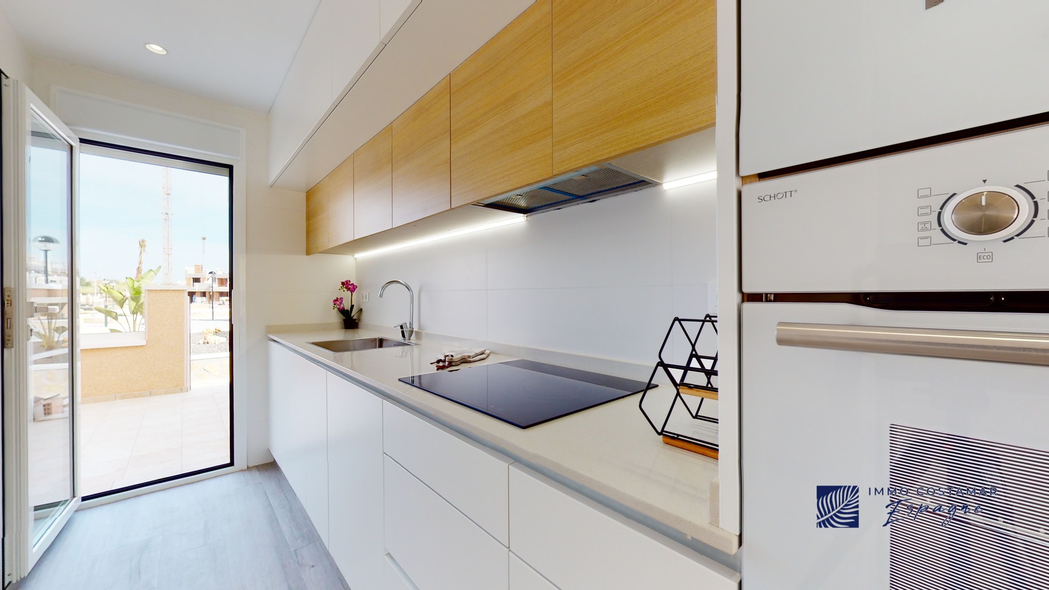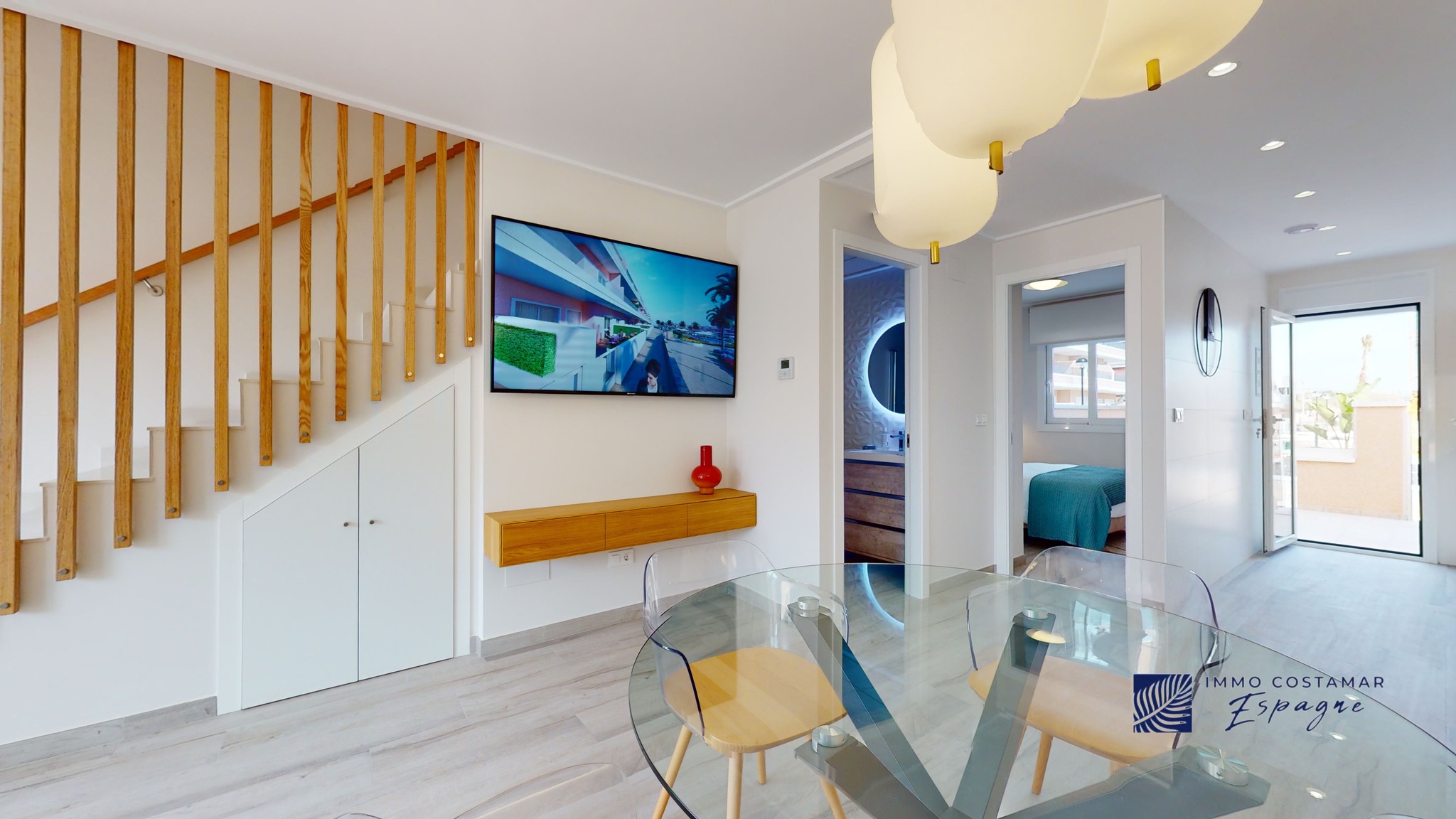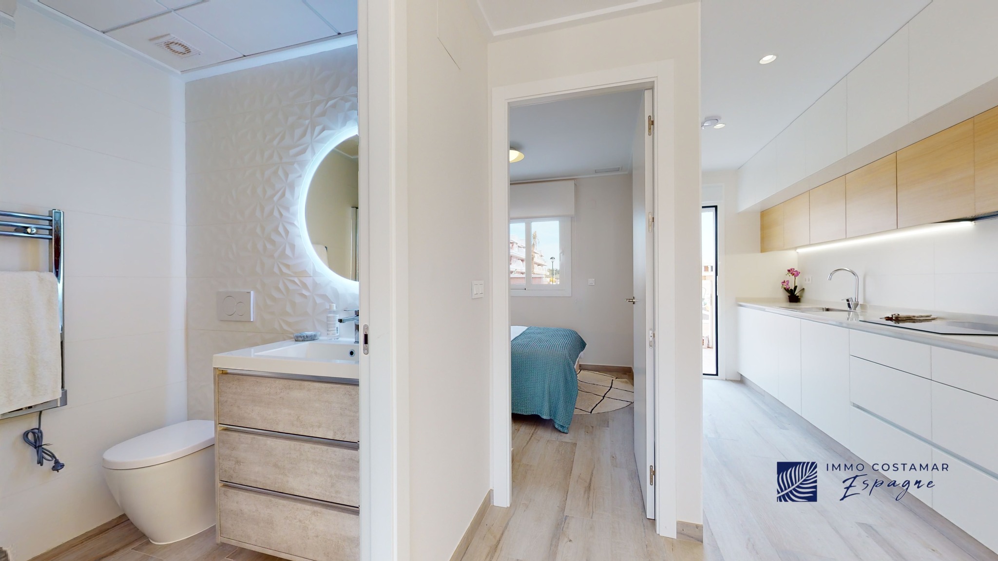 Équipements et qualités Les propriétés sont équipées de : Pré-installation de l’air conditionné. Menuiserie extérieure en aluminium à rupture de pont thermique et double vitrage. Porte d’accès renforcée pour plus de sécurité. Système aérothermique pour une production d’eau chaude efficace. Armoires encastrées avec éclairage LED. Meubles de salle de bains et paravents inclus. Pilar de la Horadada : un lieu de vie privilégié.
