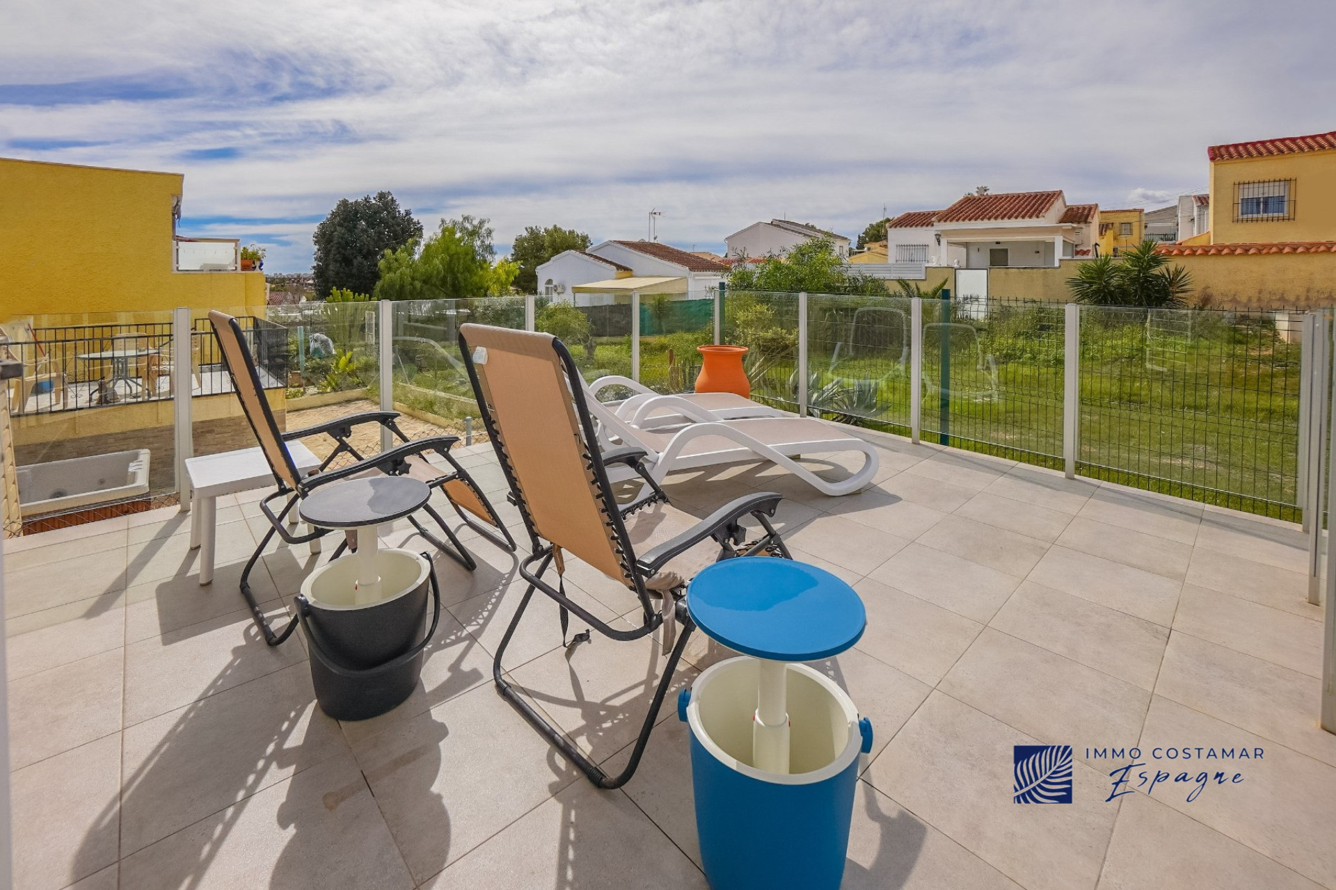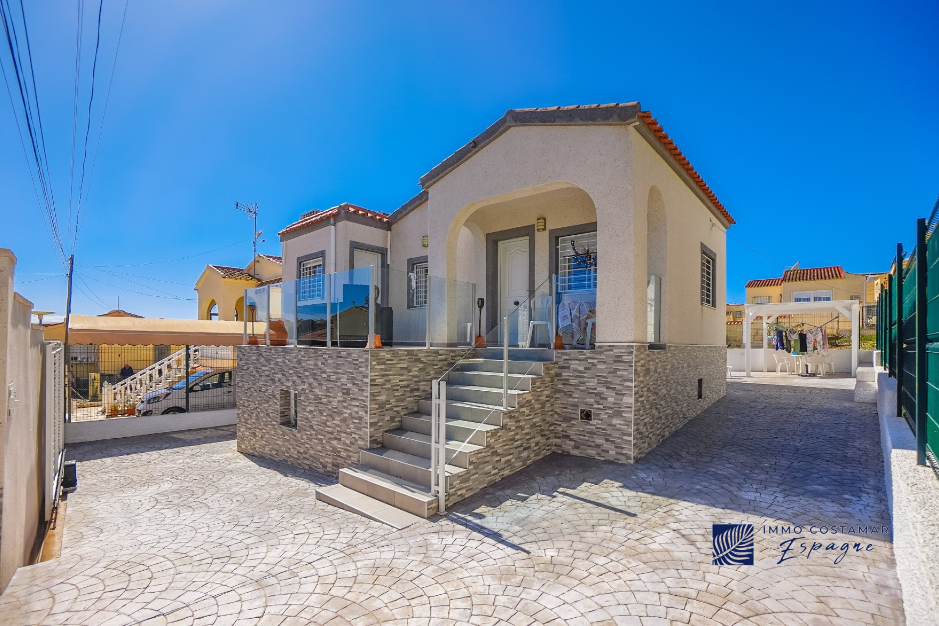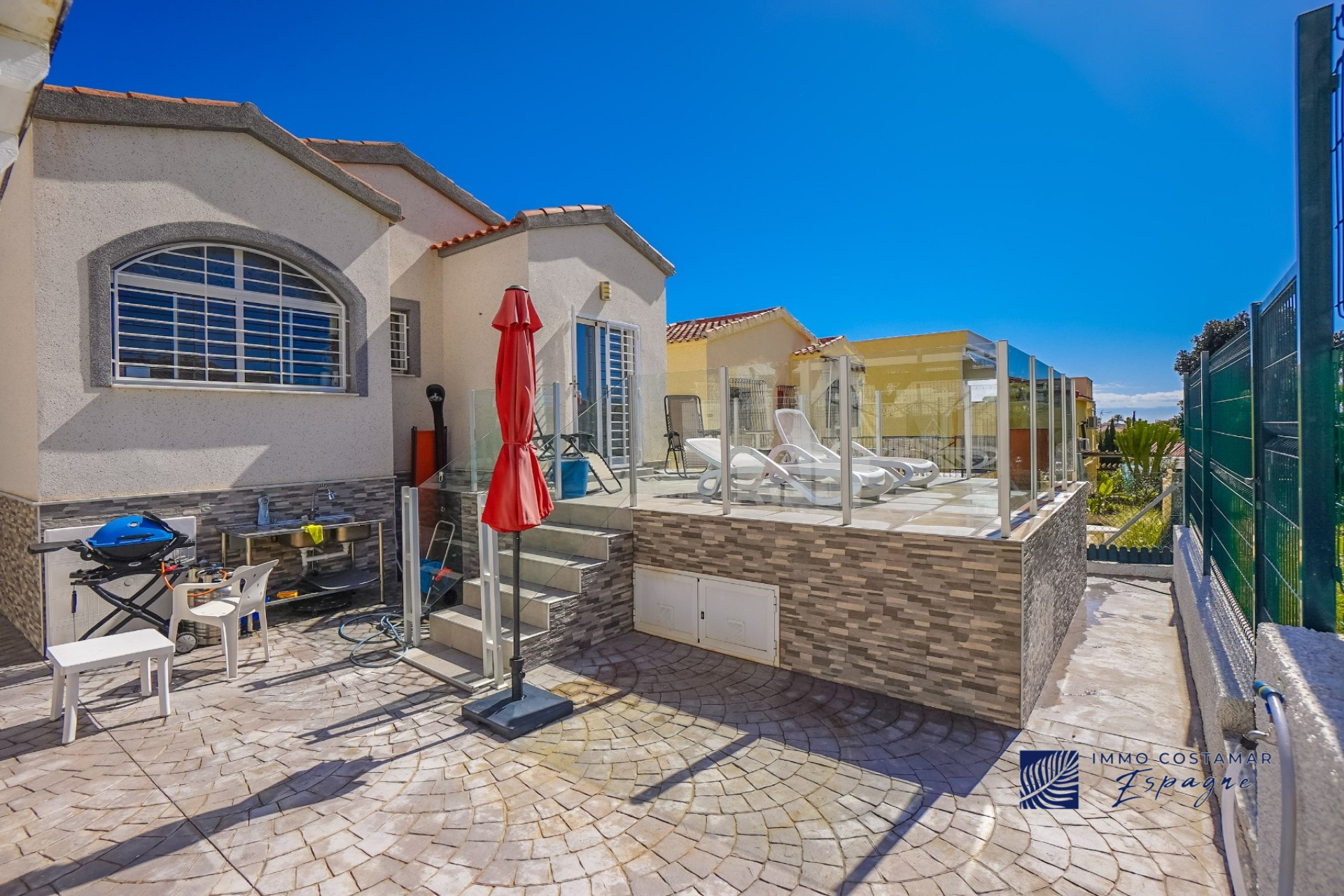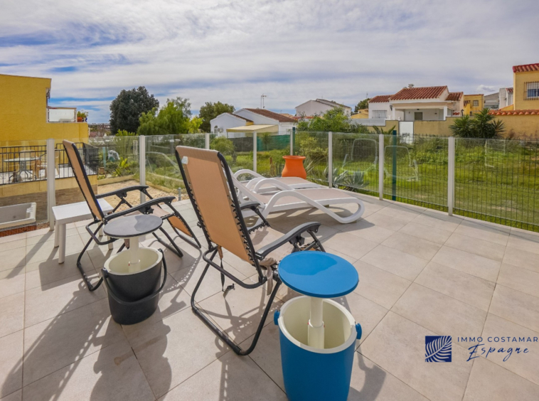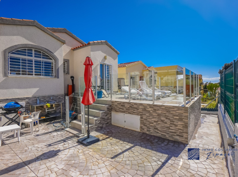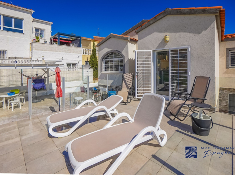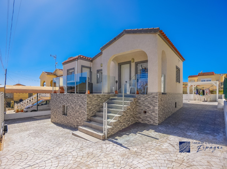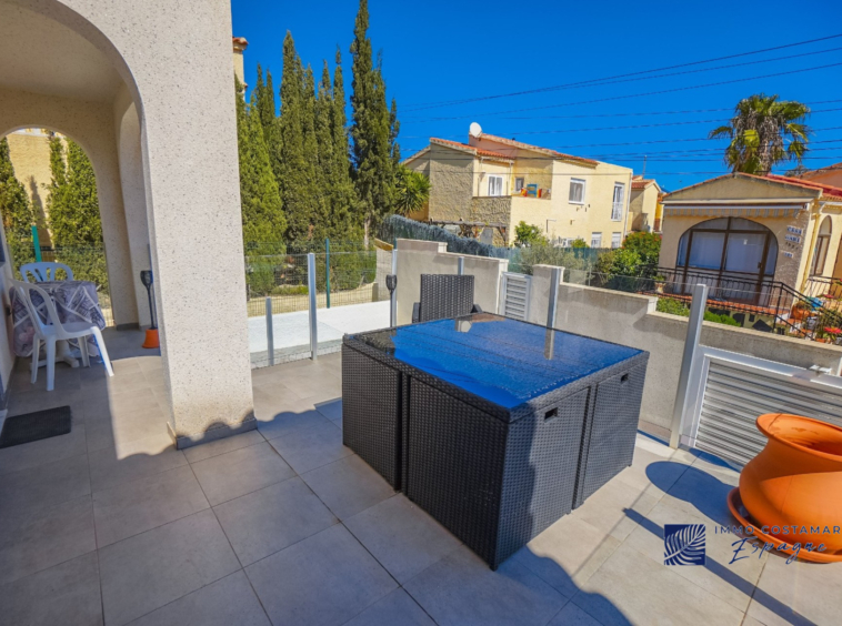 Villa individuelle rénovée située dans une impasse calme du quartier recherché de La Marina. Offrant un espace de vie confortable de plain-pied, la propriété est implantée sur un terrain entièrement pavé de 207 m², offrant un espace extérieur facile d’entretien tout en offrant la possibilité d’une piscine privée. La villa comprend trois chambres et deux salles de bains, dont une suite d’invités séparée avec entrée privée. Un garage privé et un parking sécurisé hors voirie ajoutent au confort, tandis qu’un sous-sol (sous la terrasse) offre un espace de rangement supplémentaire. Bénéficiant d’un emplacement central exceptionnel, la propriété se trouve à seulement 450 mètres de nombreuses commodités, notamment des bars, des restaurants, des boutiques et un supermarché.
