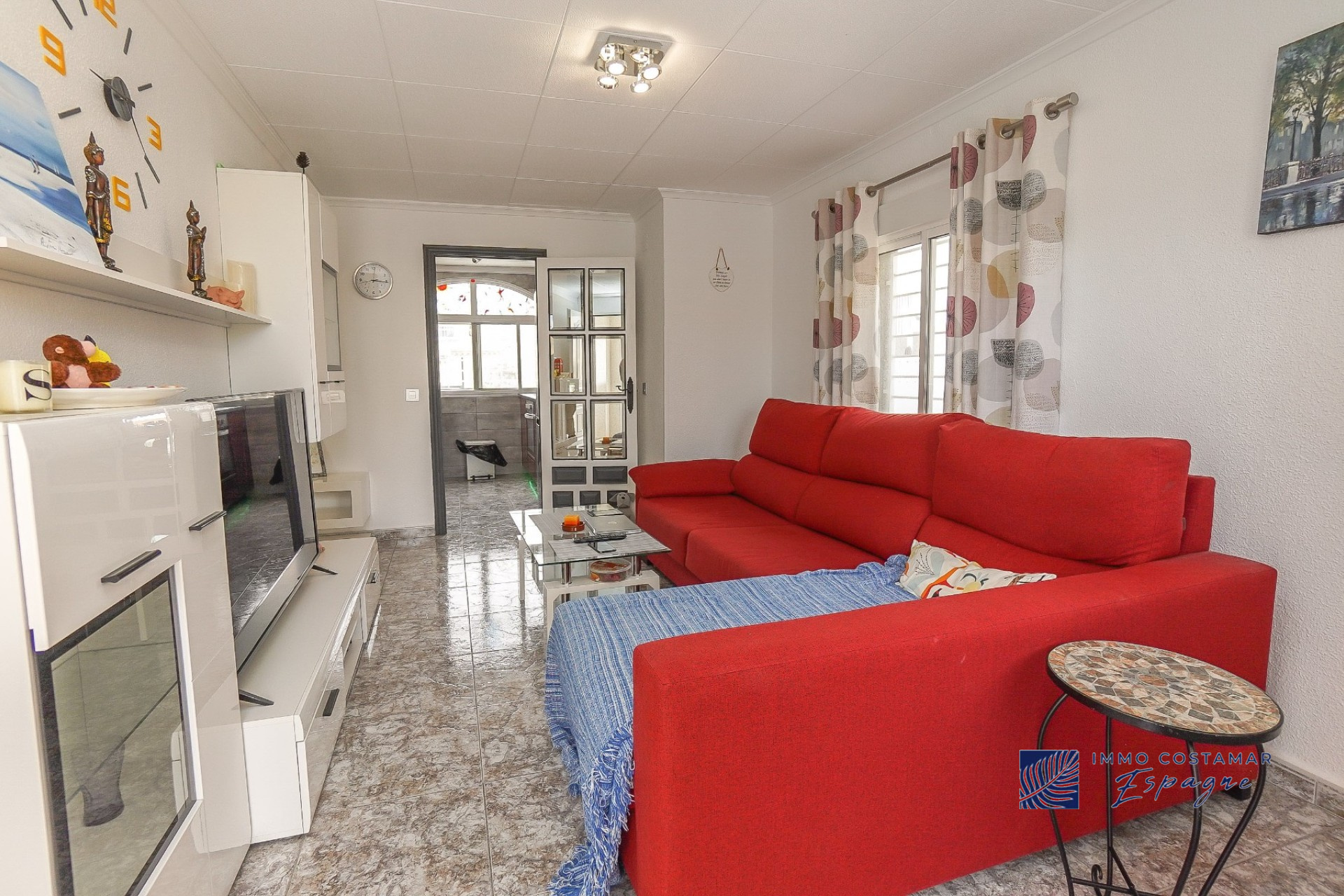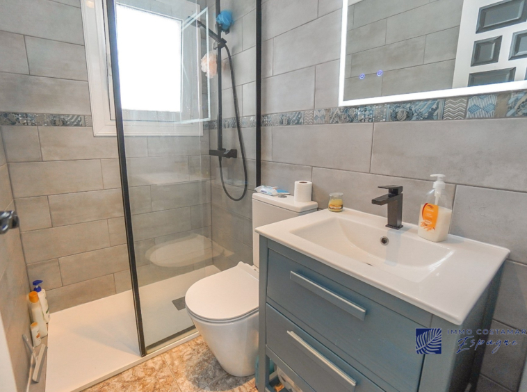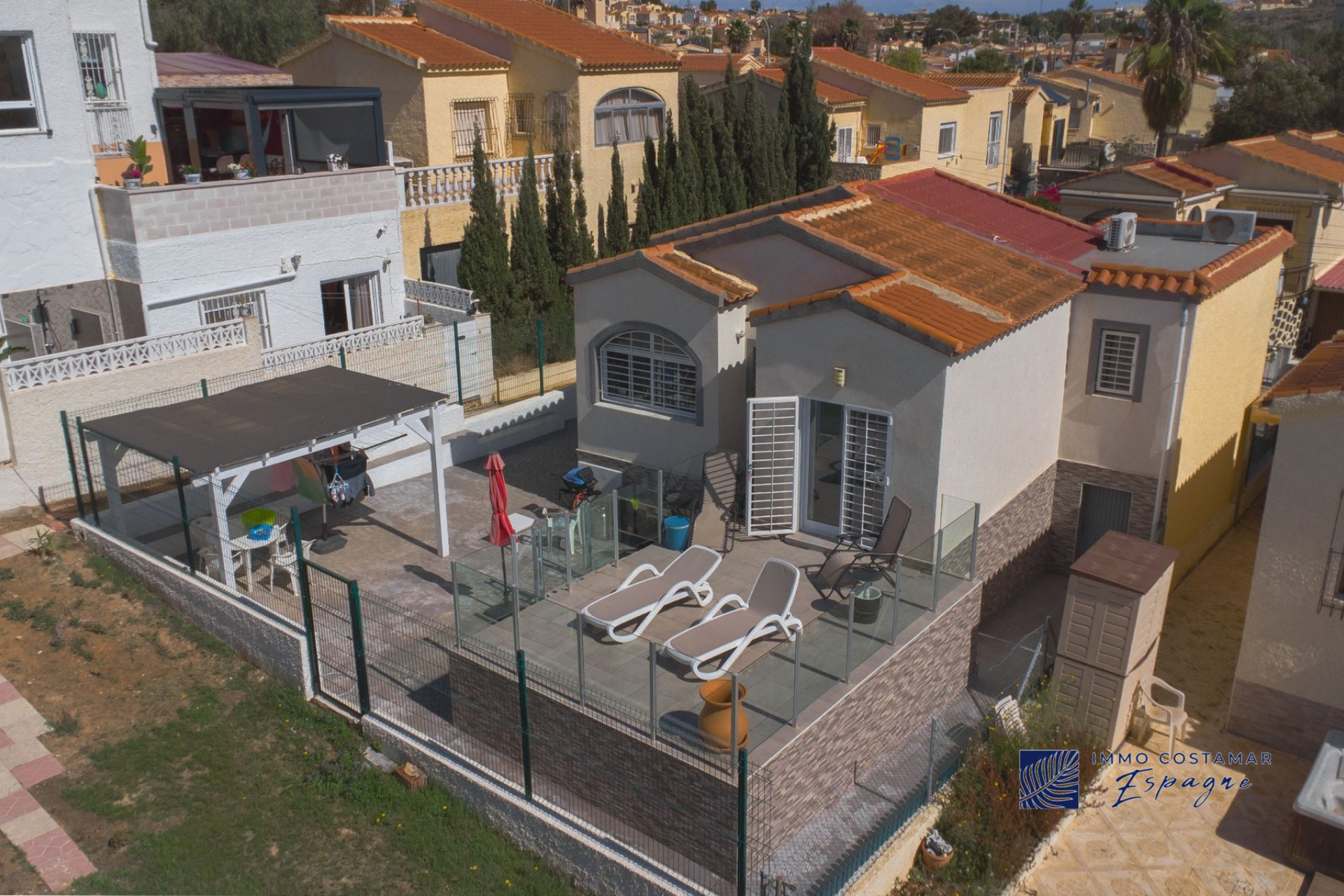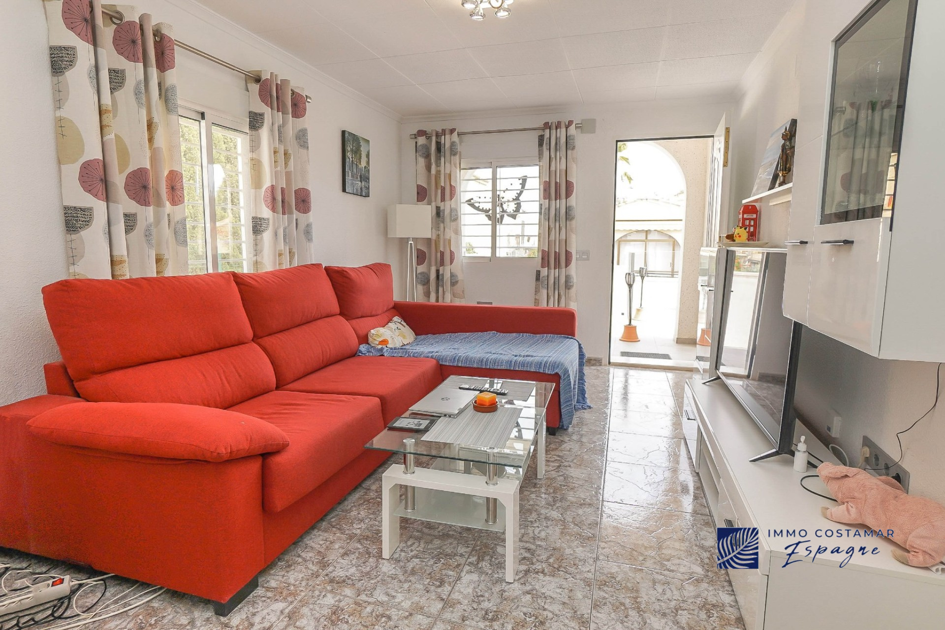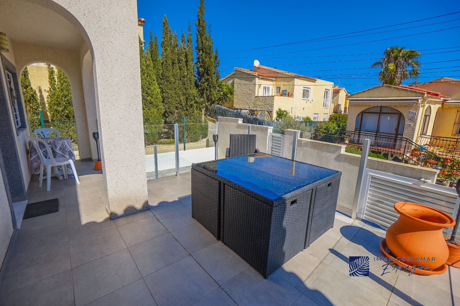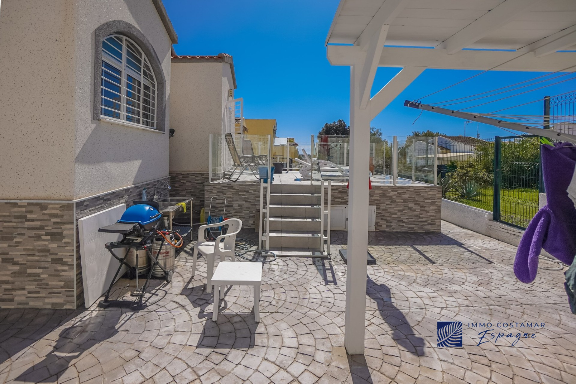 Villa individuelle rénovée située dans une impasse calme du quartier recherché de La Marina. Offrant un espace de vie confortable de plain-pied, la propriété est implantée sur un terrain entièrement pavé de 207 m², offrant un espace extérieur facile d’entretien tout en offrant la possibilité d’une piscine privée. La villa comprend trois chambres et deux salles de bains, dont une suite d’invités séparée avec entrée privée. Un garage privé et un parking sécurisé hors voirie ajoutent au confort, tandis qu’un sous-sol (sous la terrasse) offre un espace de rangement supplémentaire. Bénéficiant d’un emplacement central exceptionnel, la propriété se trouve à seulement 450 mètres de nombreuses commodités, notamment des bars, des restaurants, des boutiques et un supermarché.